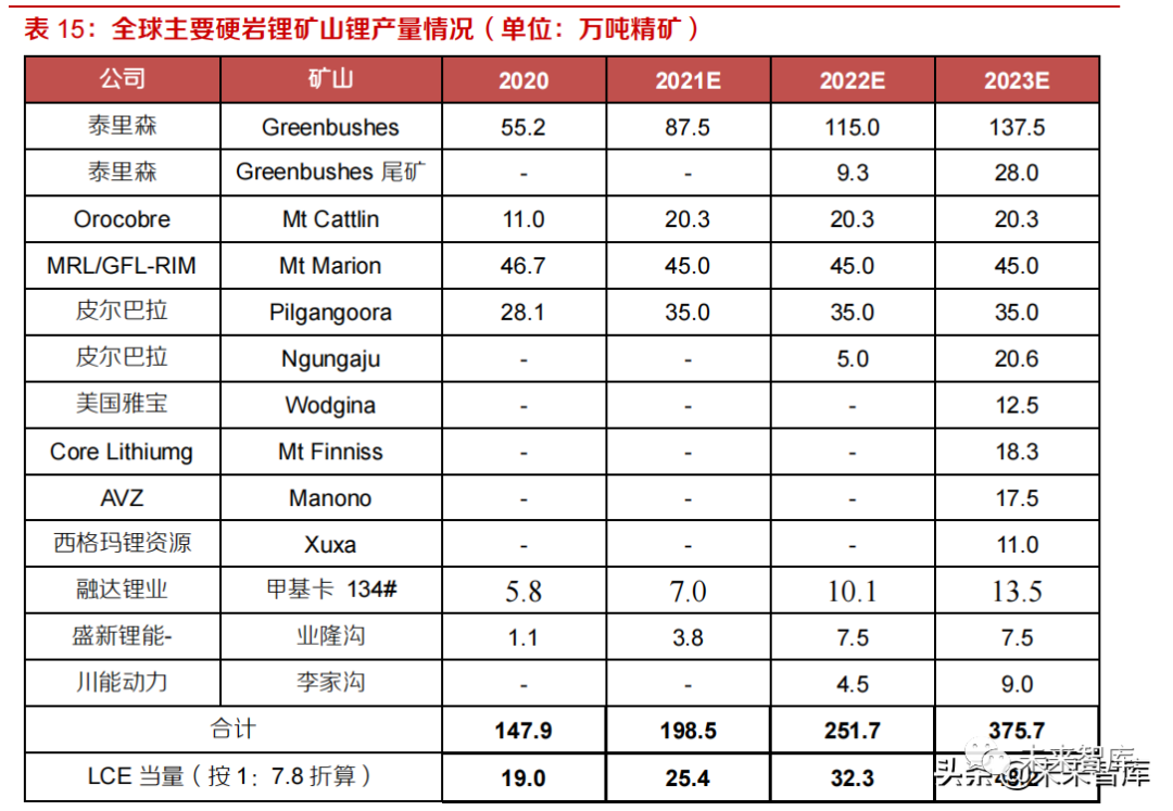 2.2.2 硬岩锂矿:21-23 年产量或达 25、32、48 万吨 LCE,同比增速或达 34%、27%、49%