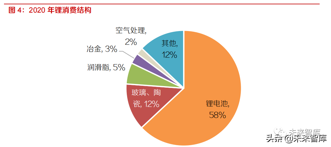 结合 IHS Market 统计数据,2020 年全球锂资源约 58%用于锂电池生产,42%用于传统工业,测算得到 2020 年全球锂资源需求总量(以 LCE 计)为 33.1万吨。在下文中,我们将以 2020 年锂需求情况为基,通过对各领域需求增长变动情况进行分析,对 2021-2023 年锂需求进行预测。