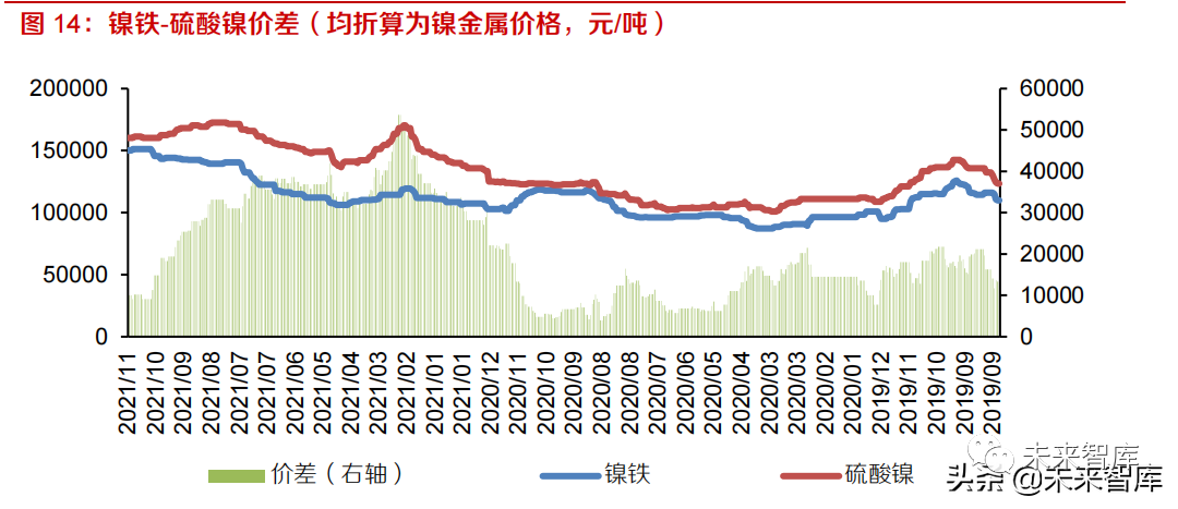 除此之外,尽管青山集团 3 月份宣布,已成功在原镍铁产线基础上成功试制高冰镍 ,并且与华友钴业、中伟股份签订了自 10 月起供应高冰镍的合作协议,但华友钴业于 10 月 20 日在投资者互动平台中表示青山尚未交付高冰镍,预计在目前的镍铁和硫酸镍价差下,青山暂无转产高冰镍动力,并且该产能与其镍铁产能冲突,暂不计入火法高冰镍产能中考虑。